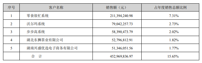 盐津铺子受益于量贩零食店更早。2022年,零食很忙便已成为盐津铺子第一大客户,传统的商超代表沃尔玛和步步高则屈居第二和第三,两者销售额之和尚不如零食很忙。