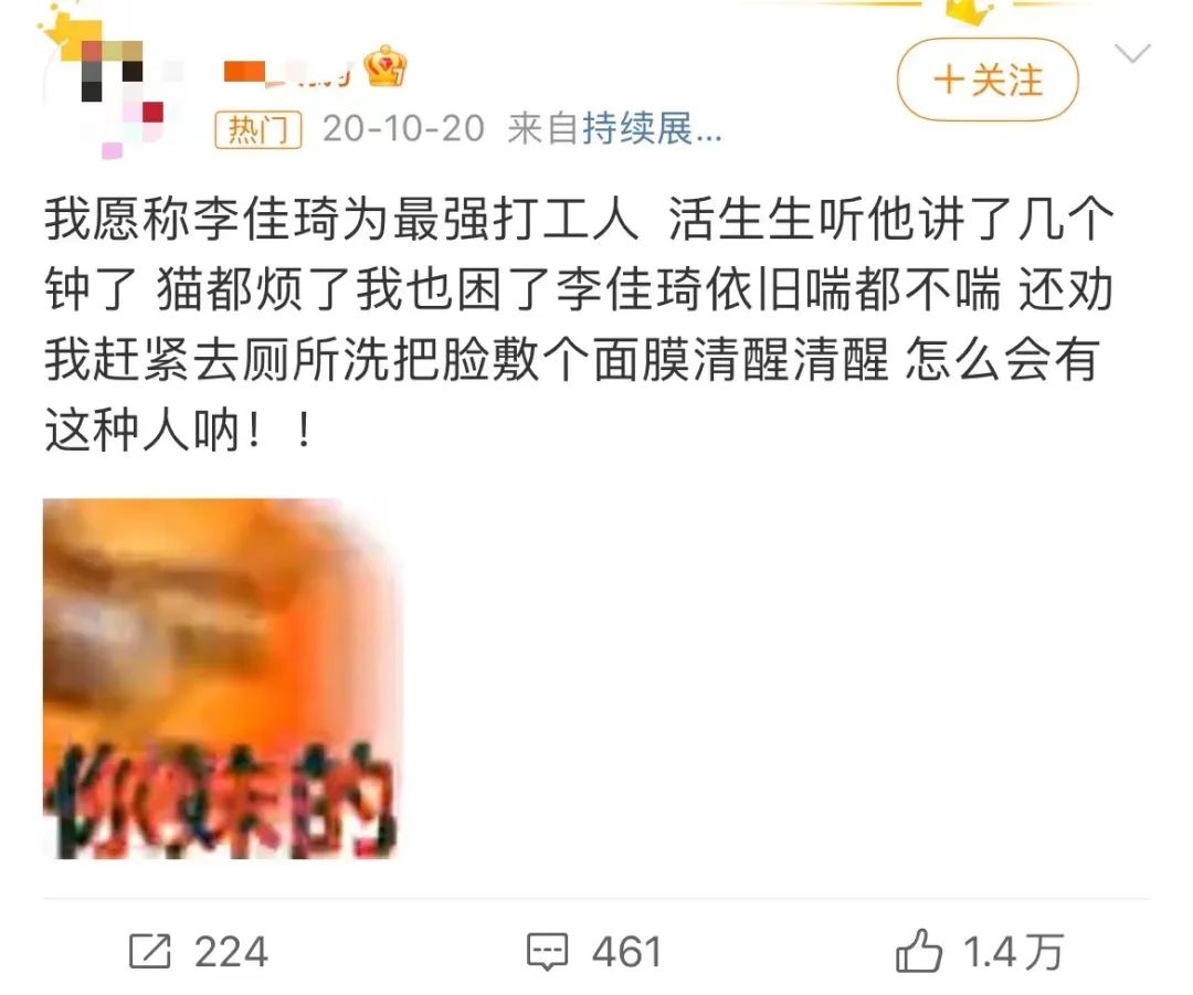 李佳琦自己也不想成为公关的负面案例,但从结果上看,最近3天,可能是他最想离开热搜而不得的3天。