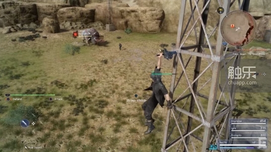 高速移动(变移)是《最终幻想15》设计出来用以区别其他动作游戏的核心特征:它的设计目标是让玩家可以在混乱的战斗局面中,暂时脱离出来进行思考——对,它是这个系统中代替回合制“等待时间”的设计。在这段时间里,你可以使用变移迅速找到自己想要攻击的部位进行攻击,或者干脆就是用来脱离危险的敌方必杀大招。《最终幻想15》不是一个判读距离的游戏,而是一个高速、参与人员众多、场面混乱的游戏——这意味着很难判断出到底谁正处于危险状态,所以他们设计了这个可以瞬间脱离战场或者在目标不同可攻击部位之间穿梭打击的高速移动/攻击机制。这个机制甚至同时担负了回复的作用:当你对着战场外的使用变移时,你的生命和MP会高速恢复到满。