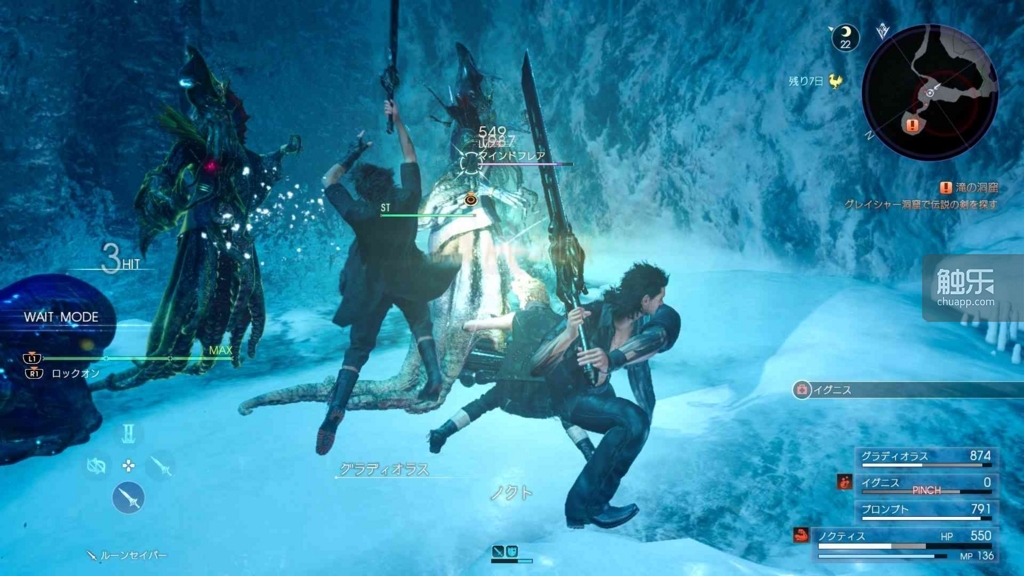 《最终幻想15》的战斗,给人的第一印象是华丽、快速而混乱。和如今主流的、只能控制一名角色的动作化/射击化RPG不同,最终幻想系列坚持保留“和同伴一起作战”的传统RPG感觉,主角的队伍包括可以操作的王子和他的三个被俗称为基佬的同伴。