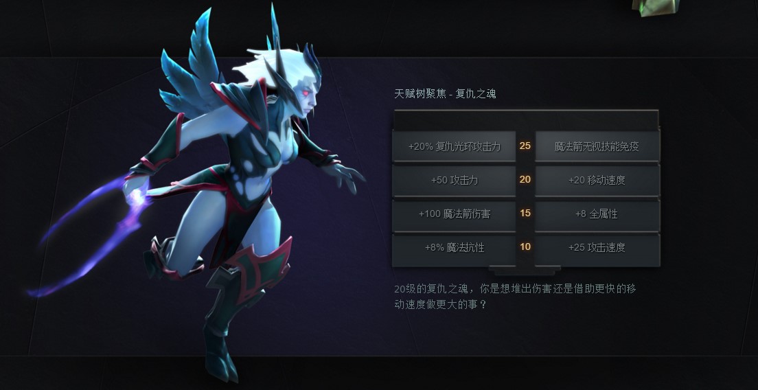 比如,复仇之魂的天赋树选择极大程度适应了英雄本身在核心和辅助两种角色上的定位,不同的天赋选择决定了英雄不同的发展路线。同时,玩家们也可以针对场上的局势变化来选择适合的天赋。
