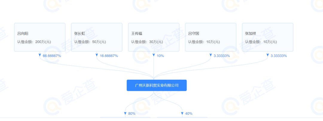 吕向阳是如何积累起原始资金的?有关这个问题的答案众说纷纭。工商资料显示,吕向阳最早担任股东的公司名为广州天新科贸实业有限公司,成立于1993年,恰好是其下海的同一年。与吕向阳同样担任这家公司股东的人还有其妻子张长虹、表弟王传福和吕守国,后续还迎来了张家祥的加入。天新科贸的国标行业为批发和零售业,具体为医药及医疗器材批发。