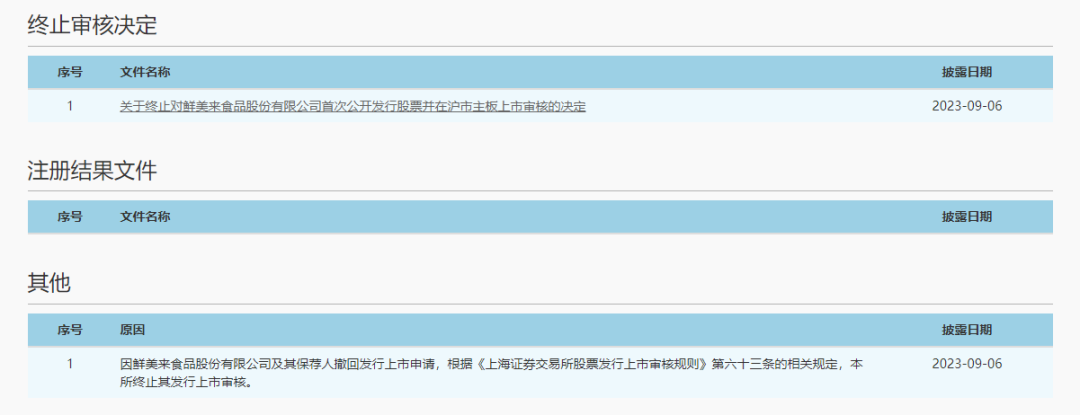 近日,上交所发布公告称,水产加工企业鲜美来食品股份有限公司(以下称“鲜美来”)及其保荐人光大证券撤回了上市申请,上交所也随之终止了鲜美来发行上市的审核。
