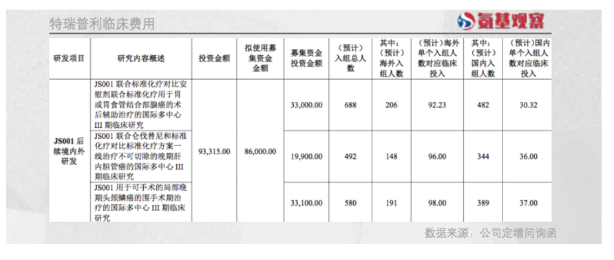 规模浩大的临床投入,与较高的单人成本密不可分。如上图所示,君实生物预计国内单个患者的投入大约在30万元,而海外患者的单人费用则达到了92万元。