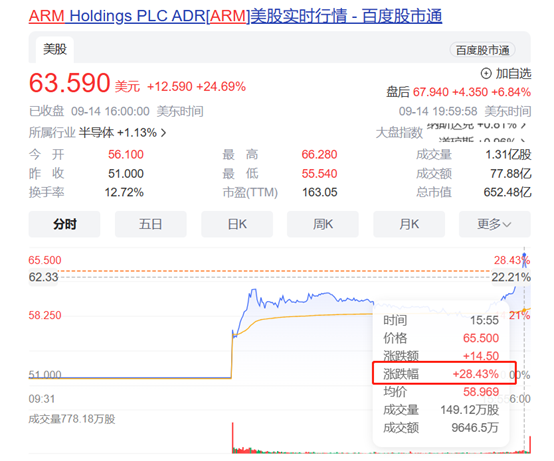 此前在13日的官宣通告中,ARM对外宣布将以51美元/股的价格发行9550万股ADS,以集资48.7亿美元,预计市值为545亿美元,目前已获突破。其中,软银将继续掌握ARM约90%的已发行股票,面向公众发行的股票约占总股票10%左右。