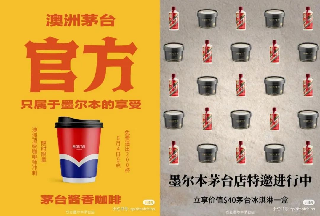 最近茅台在国外比较出圈的动作,是在墨尔本与澳洲冠军咖啡师Jack Simpson合作的茅台咖啡特调,这款产品添加了“飞天茅台”,在茅台墨尔本形象店领取,只赠送不出售,限量200杯。