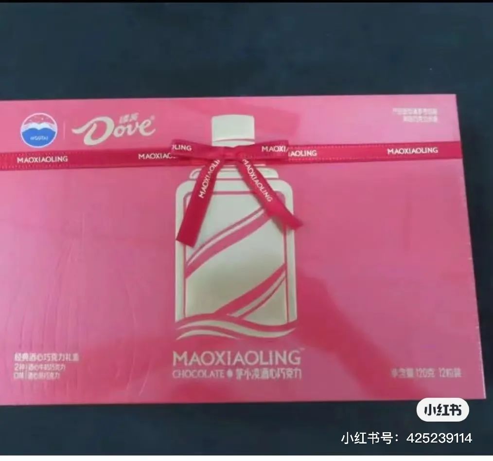 虽然目前还没有看到官方正式发布的产品信息,但在小红书上的一张“路透图”中我们看到:茅台x德芙酒心巧克力采用了红色礼盒包装,保留了德芙一贯的社交礼品属性,同时还有了“社交硬通货”茅台品牌的加持。考虑到紧接而来的中秋、春节等送礼佳节,我们感受到德芙确实意在为更多中国日常社交送礼场景送去甜蜜。