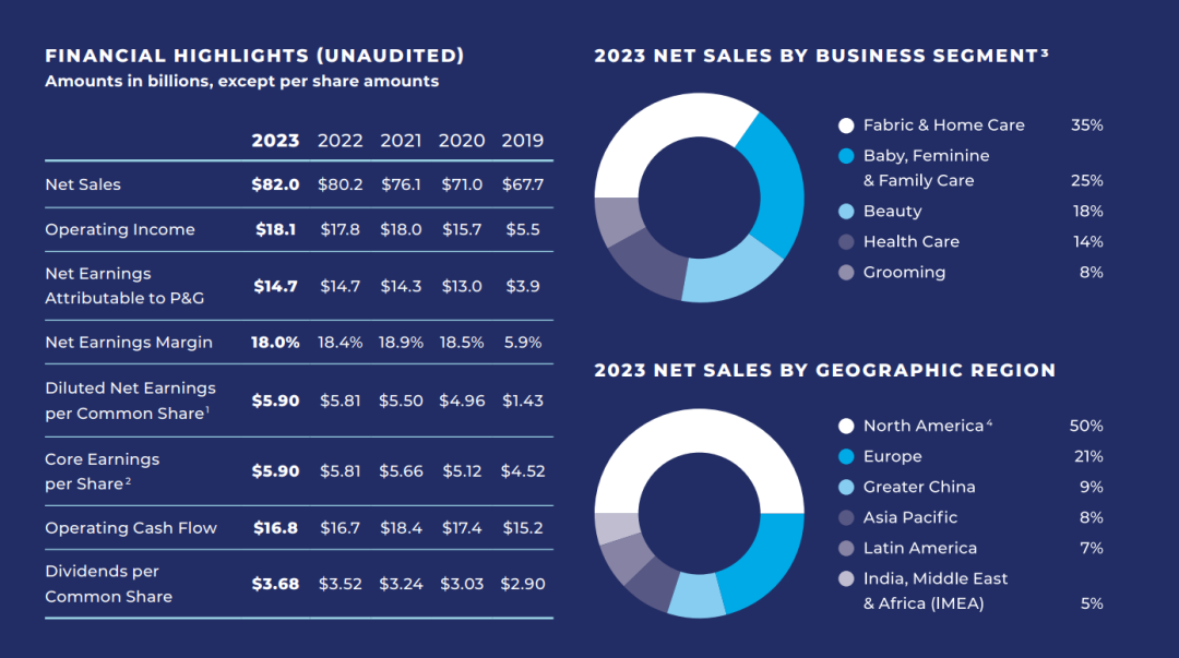 7月底,宝洁发布了2023财年(2022年7月1日—2023年6月30日)第四季度及全年财务报告。报告显示,2023年第四季度,宝洁净销售额同比增长5%,达到206亿美元,净利润34亿美元,同增11%。