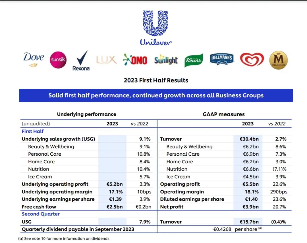 联合利华在2023上半年的广告支出则增长了10%,有机销售额增长接近8%。