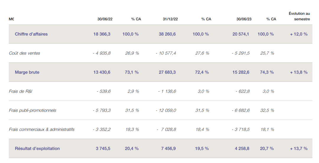 除宝洁外,欧莱雅2023上半年广告支出占销售额的比例增加了1%,有机销售额增长13%。
