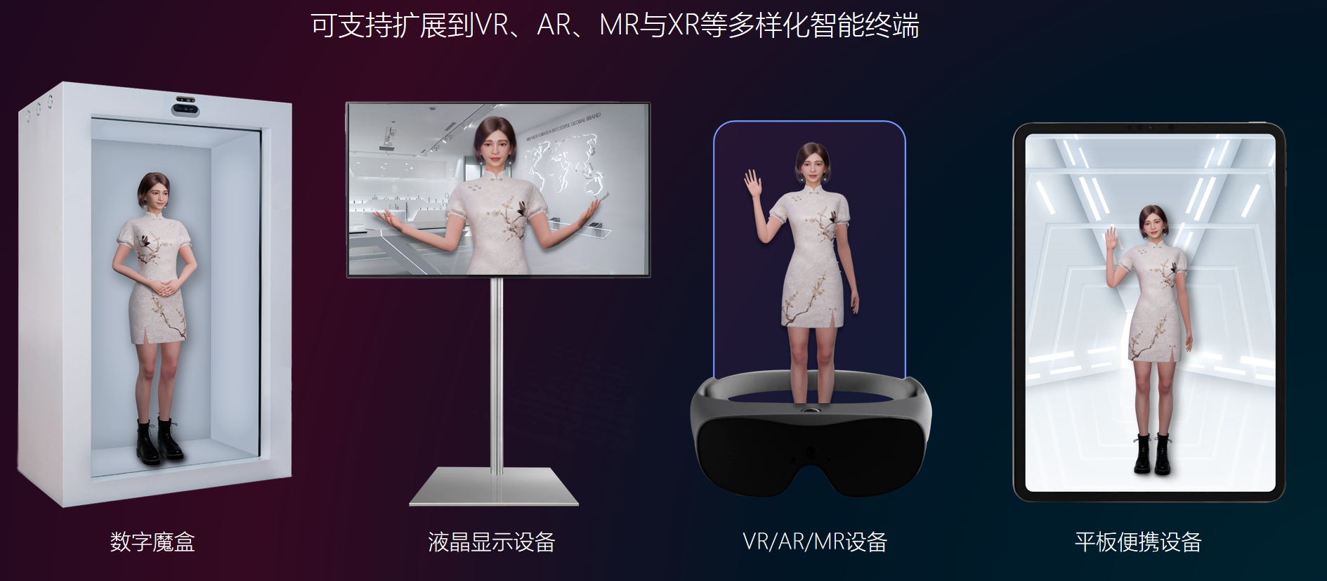 另一方面,各家都在试图让数字人从短视频直播平台中走出来。数字魔盒/液晶大屏/XR设备都是选择,数字魔盒可以放在前台、展厅等场合,成为企业形象展示的产品。软硬结合无疑为虚拟数字人打开新的商业化想象空间。