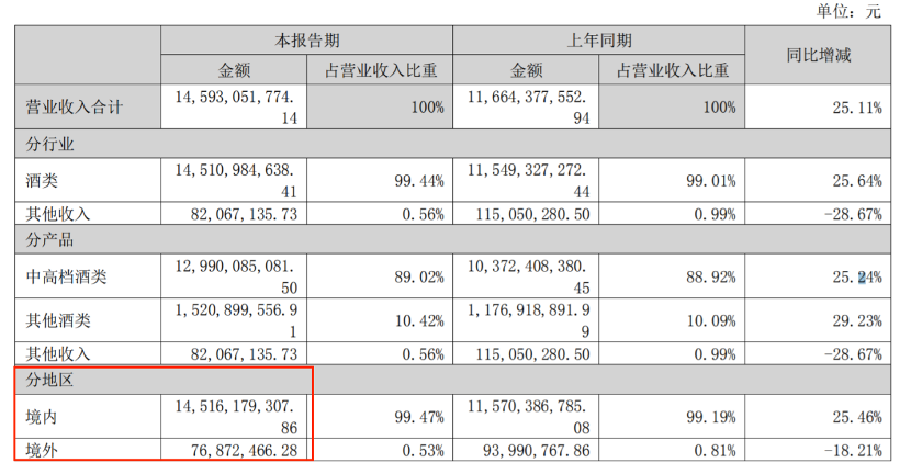 2023年半年报显示,茅台国外销售额仅20.42亿元,仅占总营收2.93%。国外经销商数量106家;泸州老窖境外销售额则更少,为7687.25万元,占总营收0.53%。境外经销商数量111家,同比减少15家。