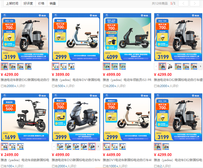 同样地,在京东平台上,雅迪电动摩托车的降价幅度也在几百到上千元不等,最高降幅为1200元。