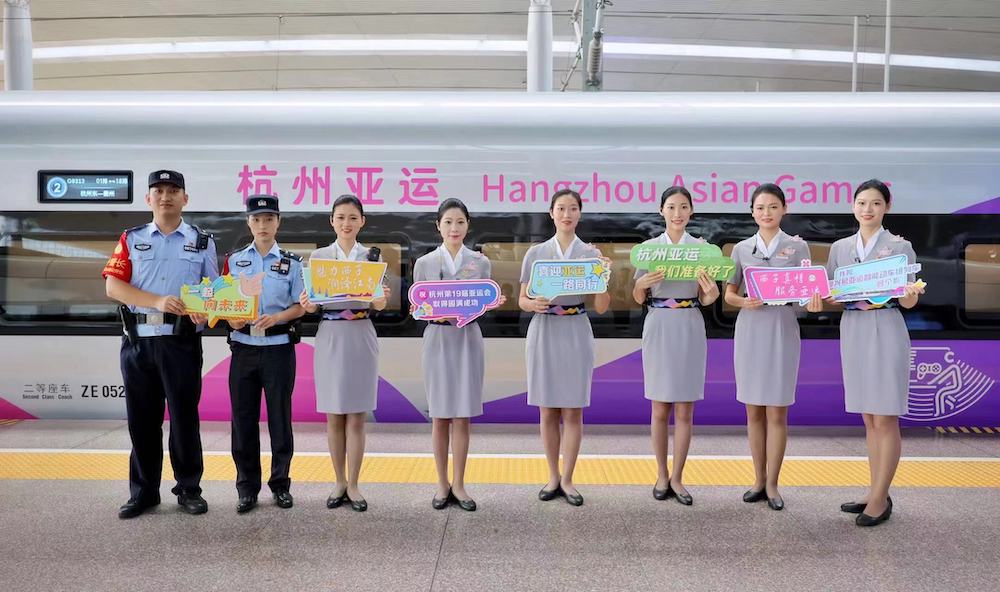 据杭州客运段高一车队党总支书记郑进介绍,亚运列车乘务人员是从该段上千名乘务员中选拔出来的,上岗前已经过一段时间的集中封闭培训。列车乘务员配备同步翻译机,可实现俄、英、日、韩等60多国语言的同步翻译。