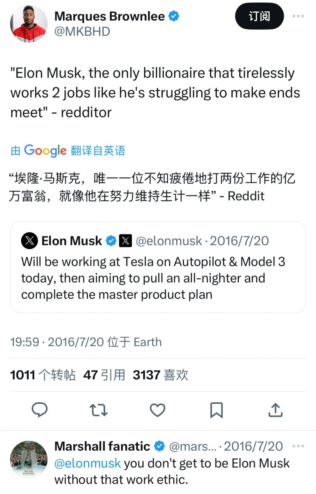 科技公司的CEO,他们往往要有对五到十年内科技发展的前瞻预测,这些对话不仅提高了节目的可看性,也让内容的含金量大大提升。 同时,他也成为少数马斯克在Twitter上关注的人之一。