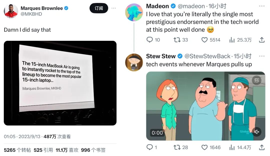从结果来看,MKB在各大社交媒体上积极与粉丝与名流互动,既保持了大众视野中的活跃度,又打造出更为丰满的个人形象,进一步营造出有亲和力的、客观的科技内容创作者形象。不仅延长了自己的IP生命线,更重要的是,增加了他社交资产的价值。