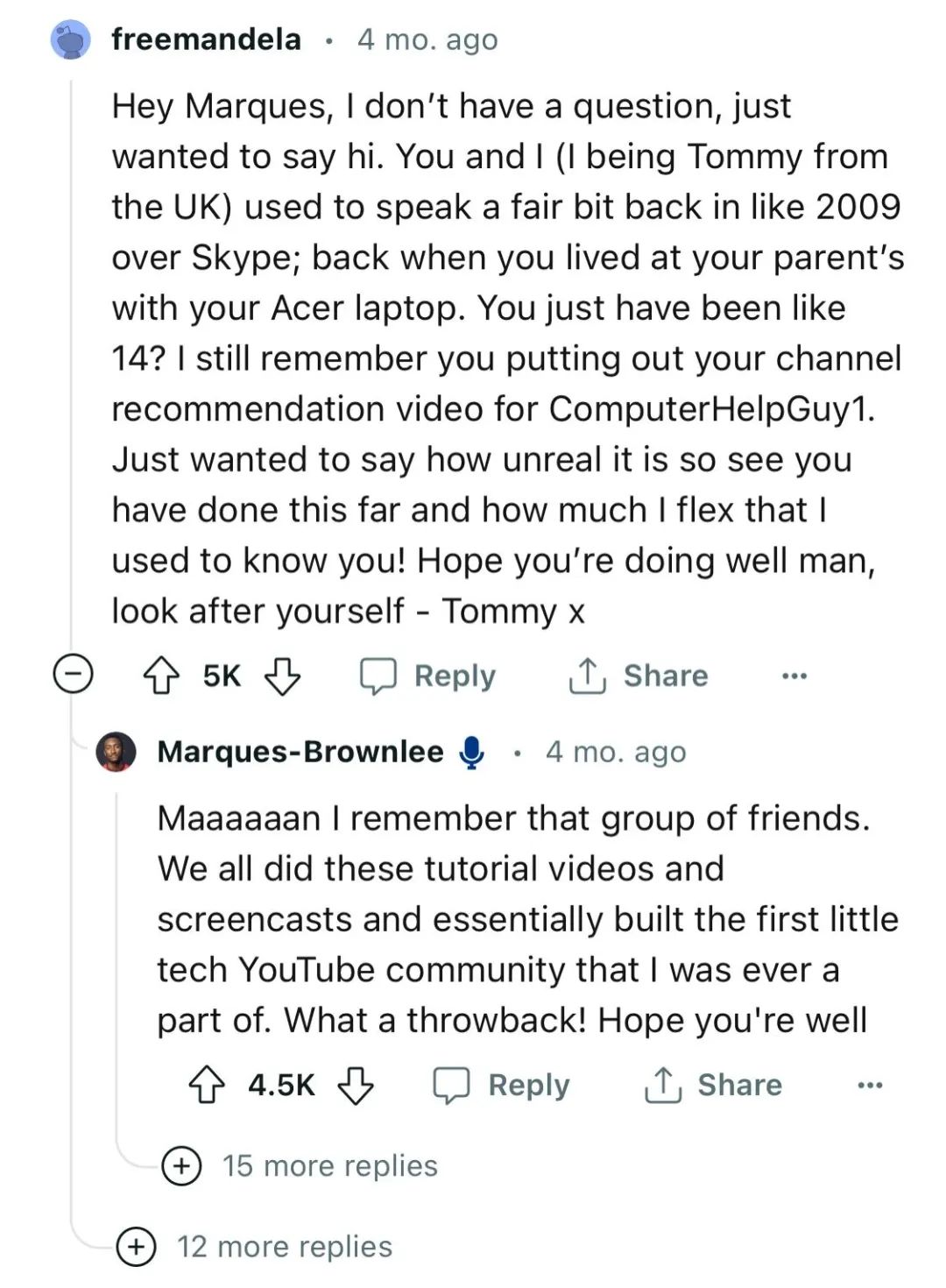 在Reddit发帖后,他也积极回复网友的问题,旧日的童年玩伴的再次出现与祝福也得到了他真诚的回复。