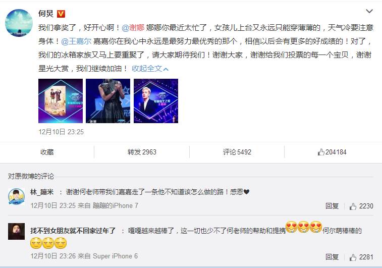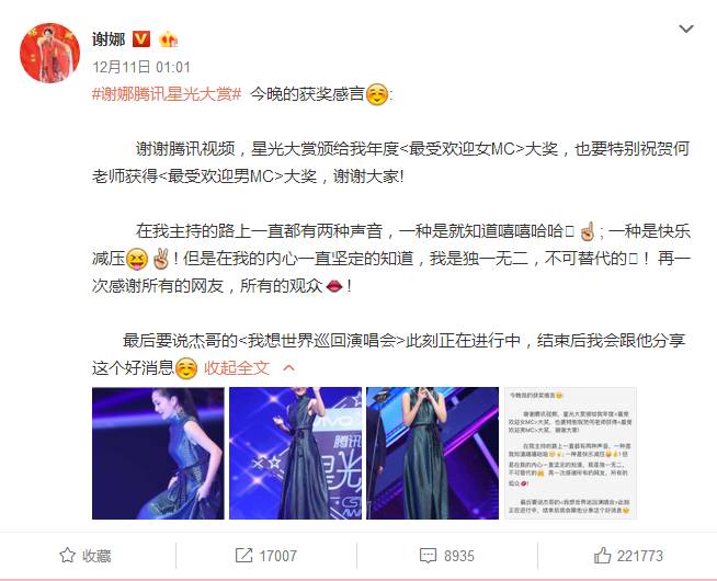 当晚的CP不少,除了凡瑶夫妇,还有何炅谢娜这一对铁杆搭档,他们也发微博互相祝贺;