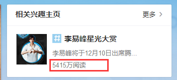 在#李易峰星光大赏#、#赵丽颖星光大赏#、#黄子韬星光大赏#、#王凯星光大赏#4个话题以下,少则近2000万的阅读,多则5400多万的阅读,这些数据可都是粉丝们顶上来的!