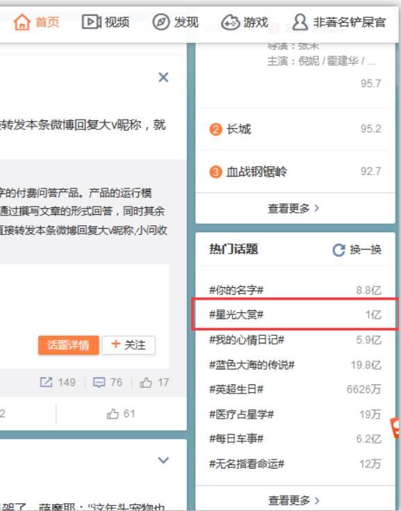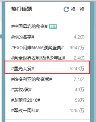 其实这次《星光大赏》的活动早在前几天就已经挂在热搜推荐榜单里了,而且人气居高不下。