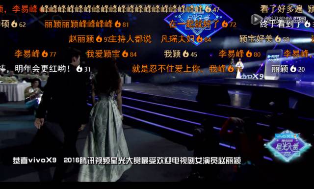 赵丽颖和李易峰一上台,弹幕的粉丝就狂热的开始刷屏: