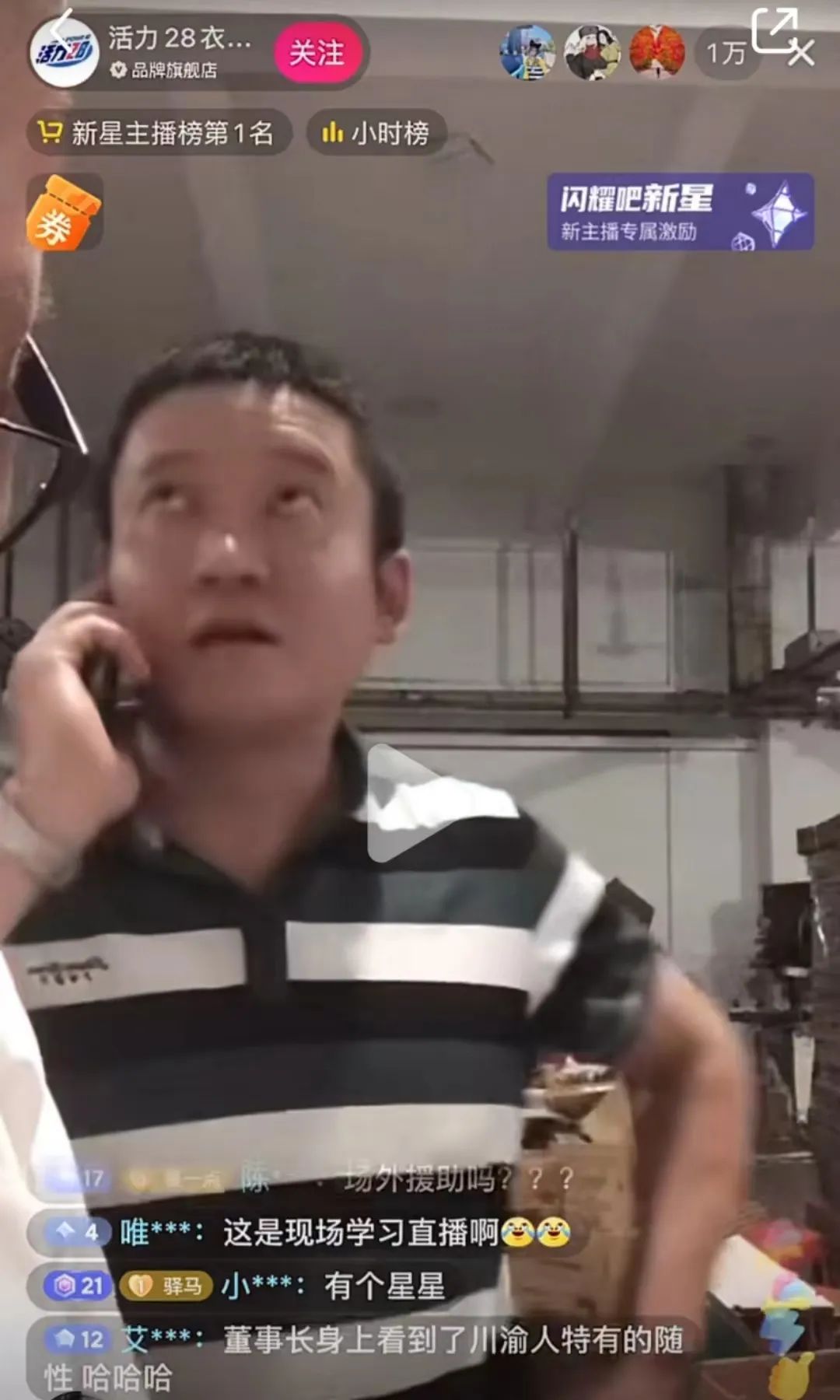 甚至直播间里上了年纪的主播们,也并非活力集团的工作人员,而是一家名为成都意中洗涤用品有限公司的中高层,“临时抽调过来帮忙的”。根据极目新闻报道,这家企业属于活力集团的代加工合作伙伴,后来拥有了生产和销售授权。