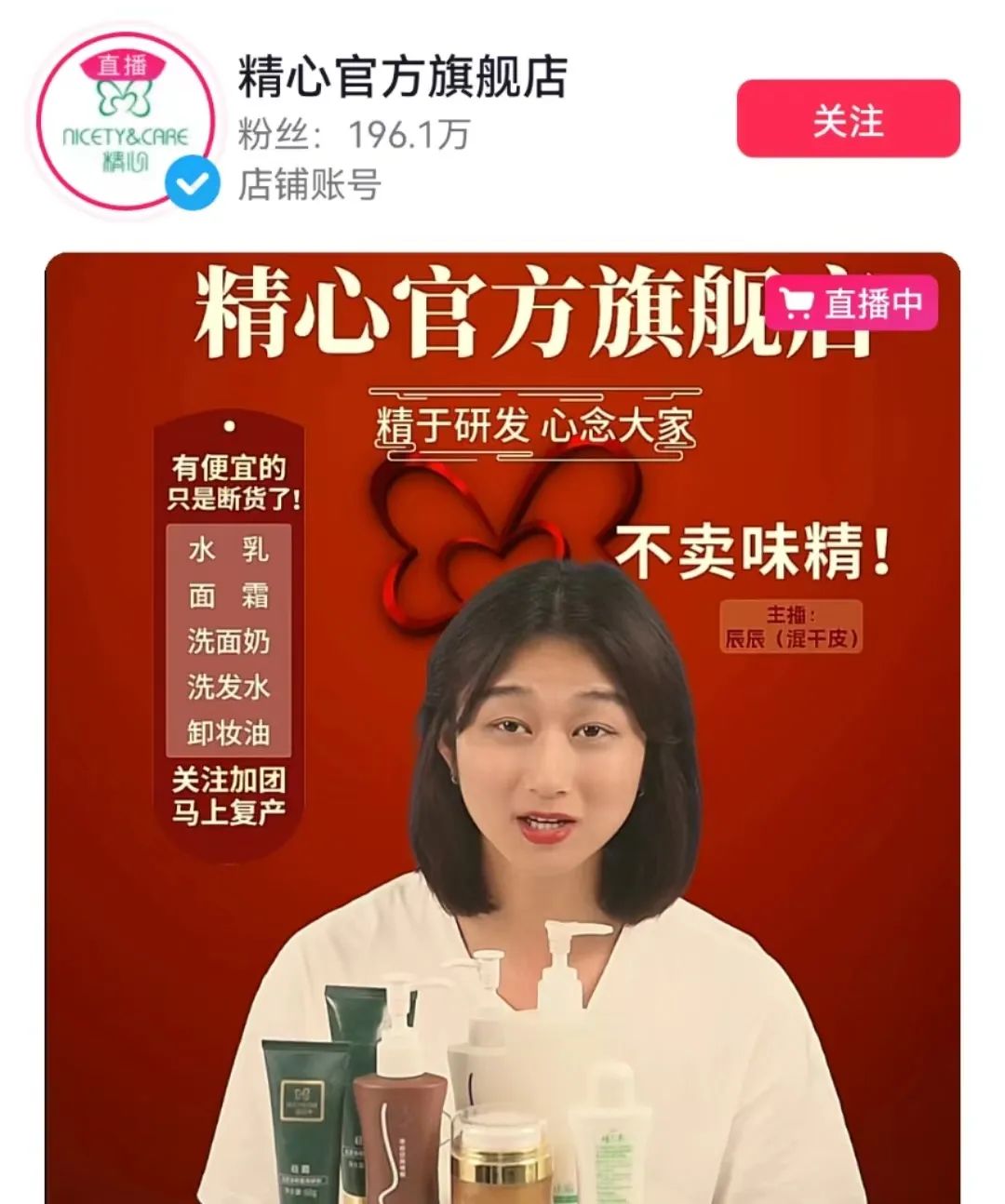 一片混战之际,一家名为精心的国货护肤品品牌,忙着辟谣说自己家不卖味精。别看它名不见经传,正经是北京协和医院旗下的品牌,早年间因为协和商标被人抢注,才不得已取了这个名字。