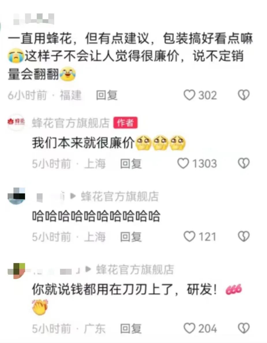 蜂花自称“廉价”,网友回复“不是廉价是实惠”。