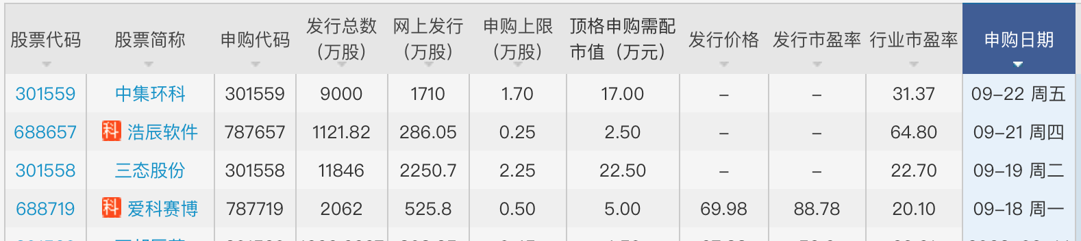 最后9月22日周五可申购中集环科(301559.SZ),这是一家主营为集罐式集装箱设计研发、制造和销售的公司,其罐式集装箱全球市占率第一。2023年上半年,中集环科的营业收入25.63亿元,净利润3.58亿元。中集环科的申购上限为1.7万股。