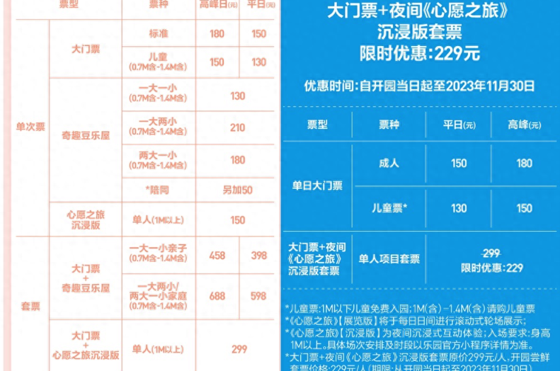 不过,在9月15日泡泡玛特更新的票价中,”大门票+夜间《夜间心愿》之旅”单人项目套餐,配合开业,进行了限时折扣活动。奇趣豆乐屋项目的价格则进行了大幅下调,“一大一小票”由原来的248元降至130元。
