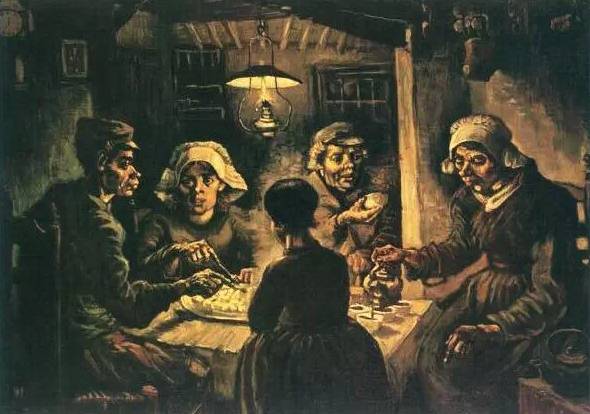 根据时间先后,我选了几幅梵高的作品我们一起来看下。先看他的第一幅作品:《吃土豆的人》