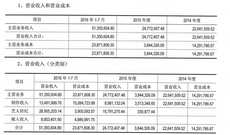 据其招股书披露,在2015年喜天影视在艺人经纪业务的收入为1579万元,2016年上半年又涨至约2895万元,分别占营收比的63.75%和56.39%。艺人经纪业务已成为喜天影视的创收主力。而更引人注目的是,上半年公司毛利率高达53%,其中艺人经纪业务的毛利率竞达86.53%。