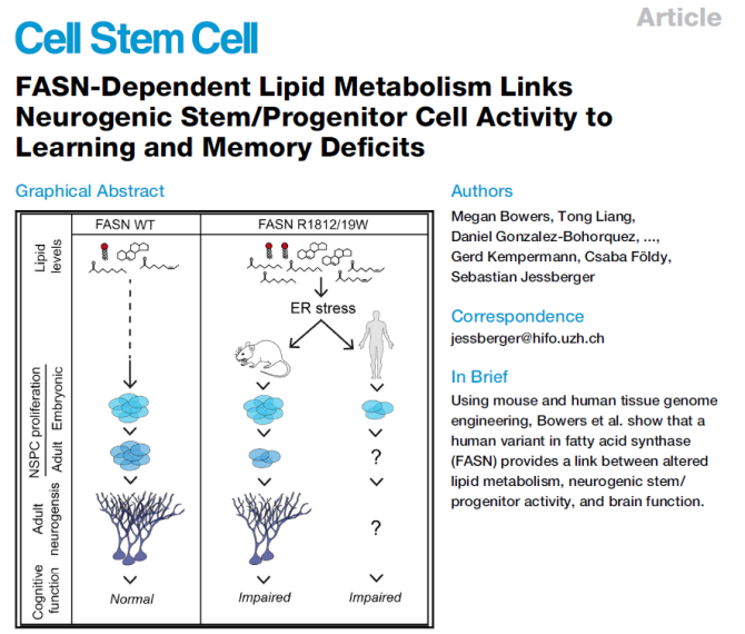 此前,苏黎世大学脑科学研究所教授Sebastian Jessberger带领的研究团队也证明了一种特殊的脂质代谢酶(脂肪酸合酶,FASN)可以调节机体大脑的发育,这种酶通过介导大脑脂质代谢从而控制脑干细胞的活性,脂肪酸合酶的遗传损伤将致使患者形成认知功能障碍。因此除了功能脂质的饮食干预外,通过其他饮食手段来操纵脂质的代谢从而改善认知情况是可行的。