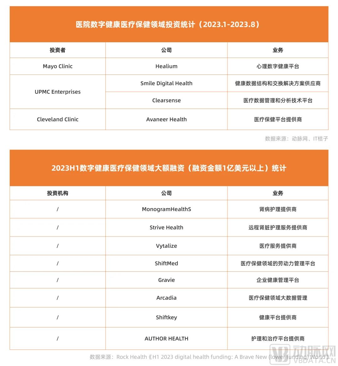 而对于医院来说,基础的医疗保健是其最大的使命,质量、效率、可及性是永恒的主题,发达地区也不例外。因此,世界顶尖的医院也长期投资数字健康在医疗保健的技术创新,即使今年全球数字健康资金降温,他们仍然保持投资节奏。
