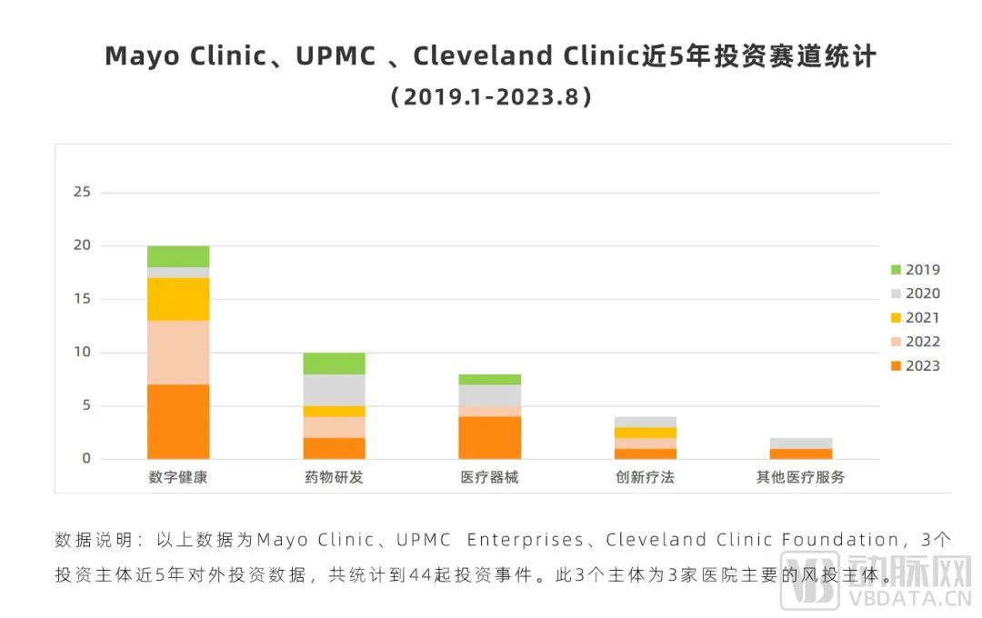 动脉网统计了三家世界顶尖医院过去5年的对外投资数据,包括Mayo Clinic(妙佑医疗国际)、UPMC(匹兹堡大学医学中心)、Cleveland Clinic(克利夫兰诊所)。看看他们在数字健康领域的变化与思考。