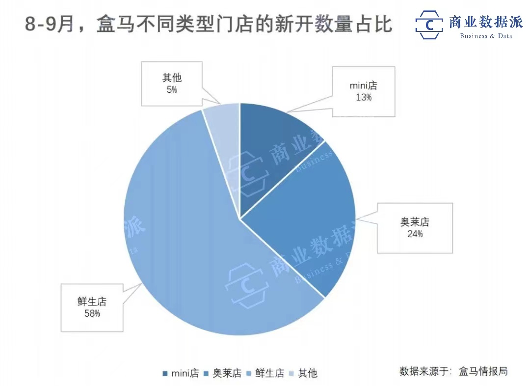 今年,盒马迎来了新一轮的扩张战略,9月达到了平均每天开一家的峰值水平。商业数据派对新开店型做了统计,发现盒马开始一面复制已经盈利的盒马鲜生,一面靠多元化业态,不断扩充客群。