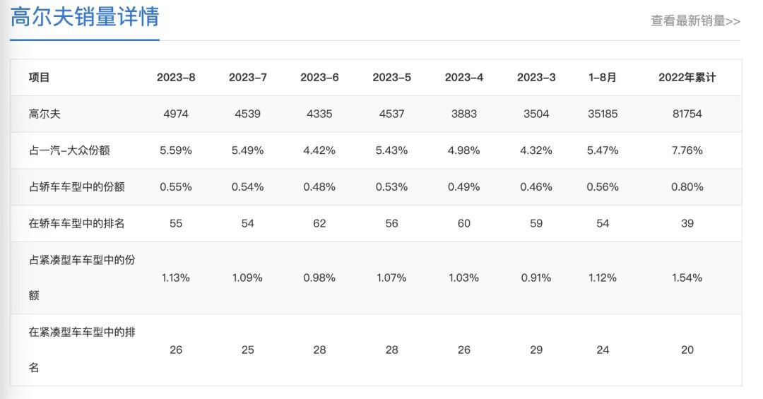 2022-2023年高尔夫销量详情(图源:太平洋汽车)