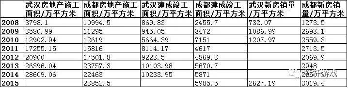 图2.2008-2015年武汉、成都房地产相关数据,制图|张银银,数据来源|武汉、成都统计年鉴及统计公报