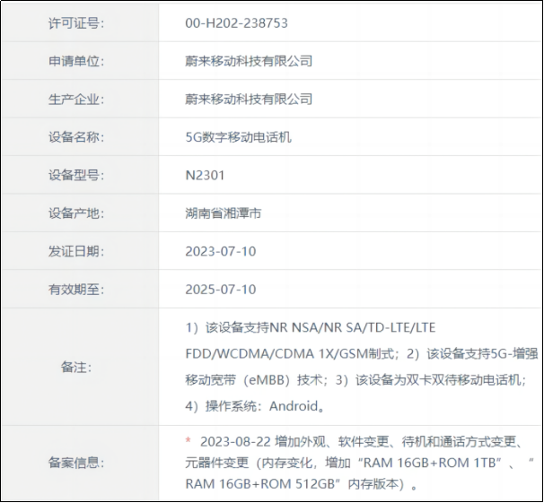 目前,蔚来手机新增16GB+512GB和16GB+1TB版本,预计搭载UWB技术,为蔚来车主提供高效便捷的汽车遥控体验服务。