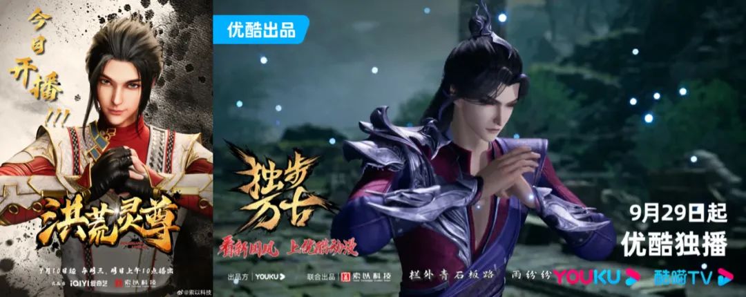 《洪荒灵尊第一季》《独步万古第一季(上)》则为索以文化的2部新作品,《洪荒灵尊》出品方为爱奇艺、索以文化,9月10日刚开播,目前连载至第6集,爱奇艺站内热度为2074,排在动漫飙升榜第6名;《独步万古》由优酷出品,预计于今年9月29日起播出。