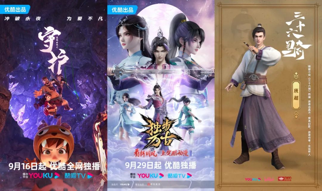 《独步万古》则由优酷出品,索以文化制作,预计于今年9月29日起播出,优酷站内已有7.9万人预约;《三十六骑》由优酷、bilibili、中影年年共同出品,目前暂未公开上线时间,但已有8.3万人预约。