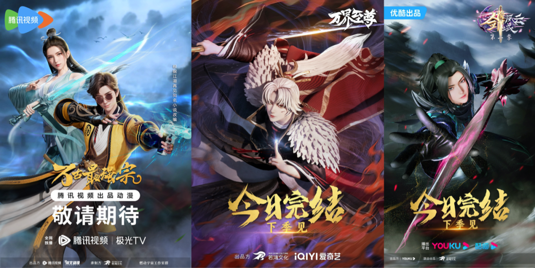 另外,还有天使文化旗下的《神印王座(月夜商会)》《龙时代(寻宝)》;玄机科技制作的《斗罗大陆二绝世唐门之武魂融合》;福煦影视制作、企鹅影视出品的《完美世界之万里相护》;《王者荣耀》团队官方出品的《是王者啊?第2季 云中不完全剿匪日记(下)》;索以文化制作、腾讯视频和索以文化出品的《逆天至尊第十二季》。