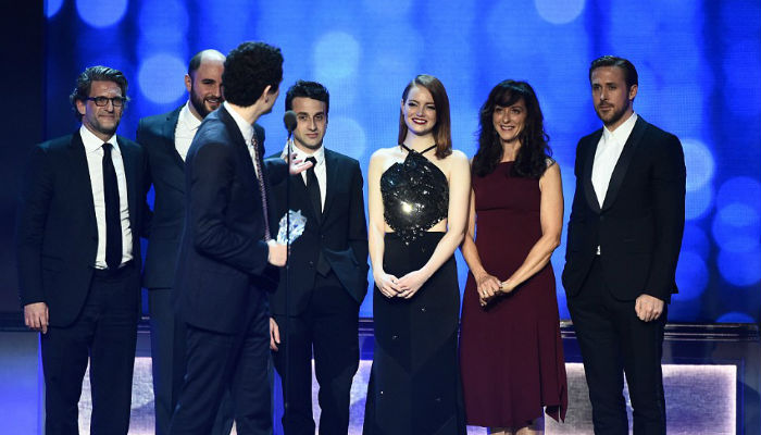 当晚的最后一个奖项“最佳影片”颁给了艾玛·斯通和瑞恩·高斯林主演的音乐电影《爱乐之城》。