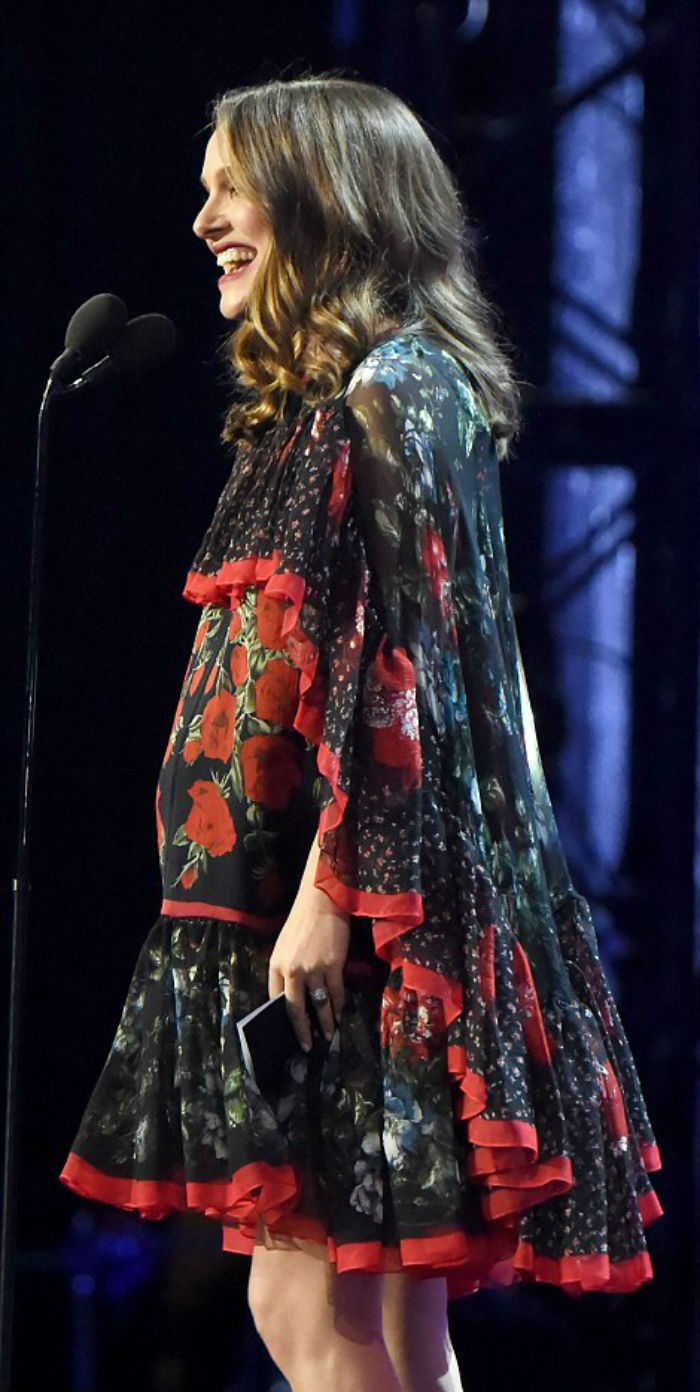 在获奖感言中,正怀有身孕的娜塔莉·波特曼感谢了她的丈夫和儿子,并在结束时说:“这真是太美妙了。”