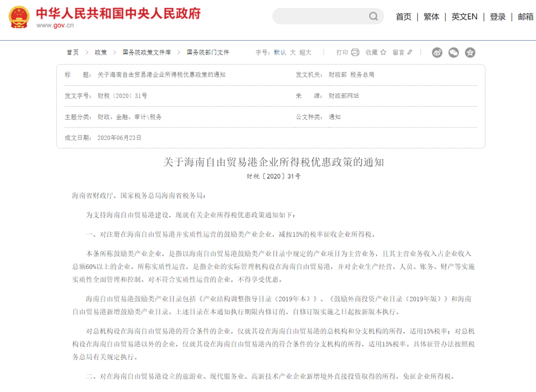 另外,最重要的是,海南对落户本地的企业提供极为可观的政策优惠:2021年时,海南对注册在海南自由贸易港并实质性运营的鼓励类产业企业,减按15%的税率征收企业所得税;对在海南自由贸易港工作的高端人才和紧缺人才,适用最高15%的个税优惠政策。
