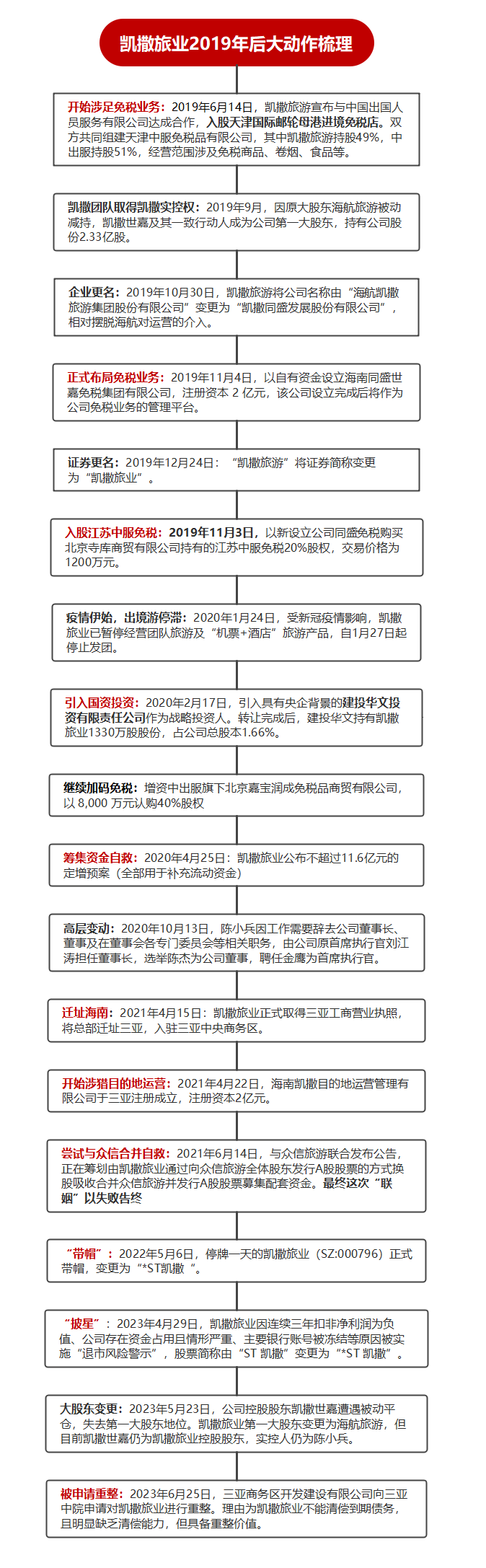 申请重整:2023年6月25日,凯撒旅业收到三亚中院送达的《通知书》以及三亚商务区开发建设有限公司(下称“申请人”)的《重整及预重整申请书》,申请人以凯撒旅业不能清偿到期债务,且明显缺乏清偿能力,但具备重整价值为由,向三亚中院申请进行重整,并申请进行预重整。