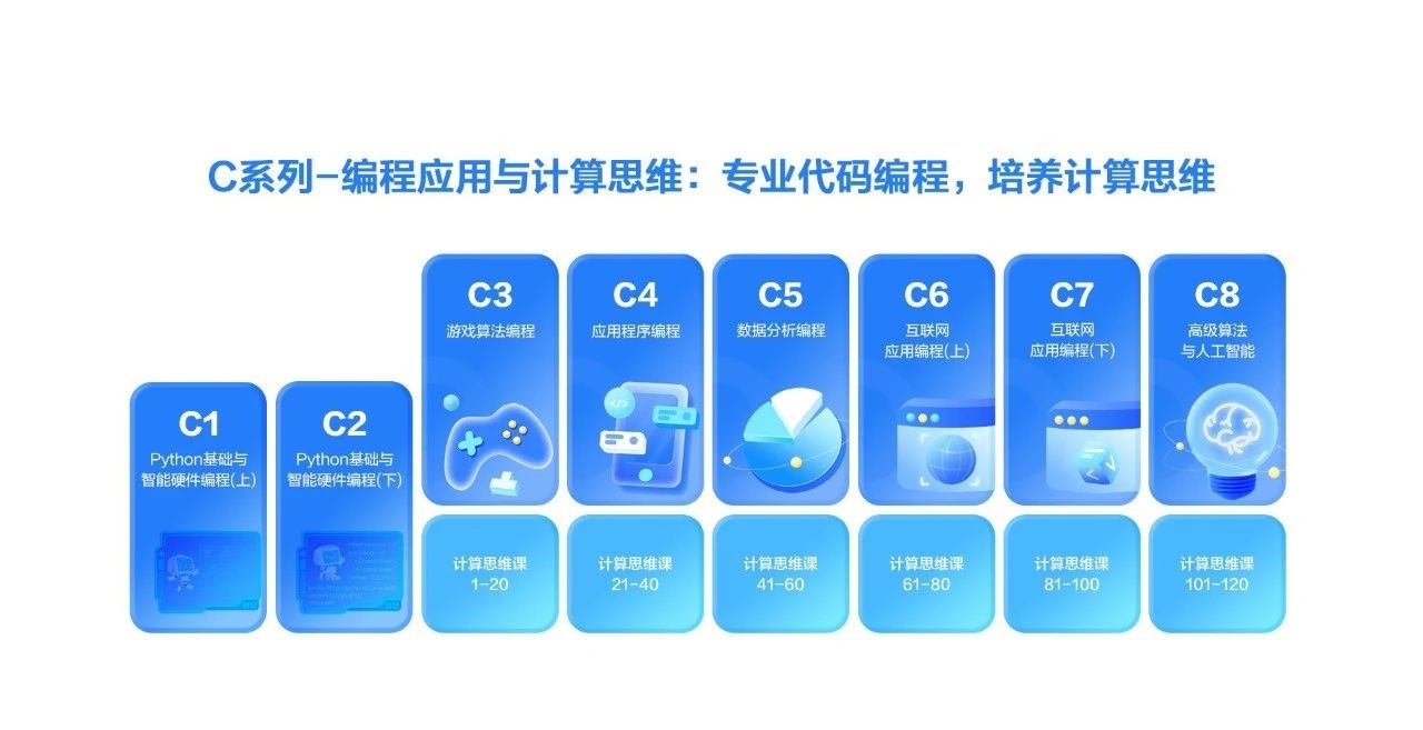李翊进一步介绍到,人工智能教育是一项系统性工程,猿编程的教学理念不止以教授编程知识为单一目标,而是切实站在孩子成长和未来人才培养的角度,让他们感受到建立在程序之上的丰富世界。在品牌使命和“四个一”培养模型的指导下,猿编程推出了行业独有的编程课,打造了专门的计算思维课和专业的Python编程课一起学的主线课程——C系列《编程应用与计算思维》。