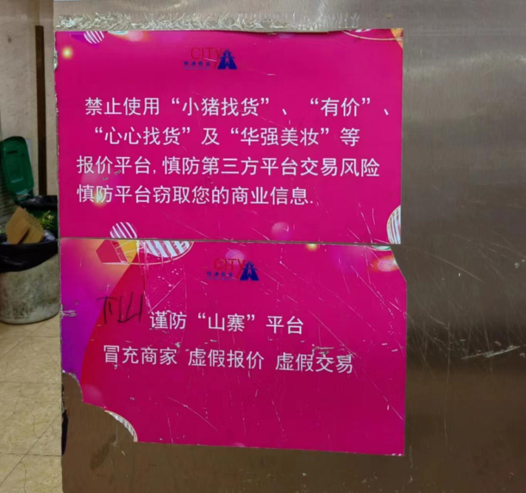 在这里,每一个敢开档口迎接客人的商户都打出“假一赔十”的口号,强调诚信经营、正品货源。但远不如当年一窝蜂地转型求发展来得整齐划一,如何撕掉“假货”的标签,做好“华强北美妆”的生态治理实现自救,是一项需要内外力协作、长期且艰难的大工程。