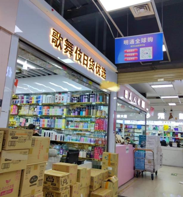 这一转型最先从明通电子大厦开始。原先做国产山寨手机的老板们利用原来的供应链和运营模式干起了美妆,价格约为官方售价的5-6折,而后商场也更名为“明通化妆品市场”,生意好的时候,热闹程度堪比当时的日韩免税店。