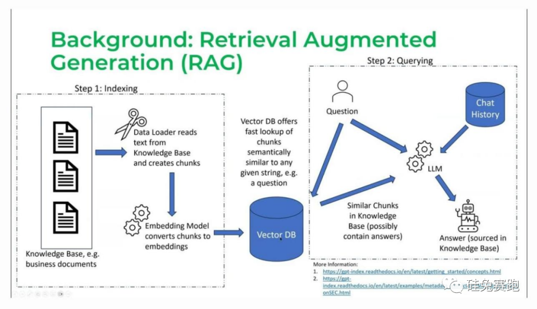 收集所有要供LLM使用的文档,将这些文档分成可以输入LLM以生成嵌入的块,并将这些嵌入存储在向量数据库中。